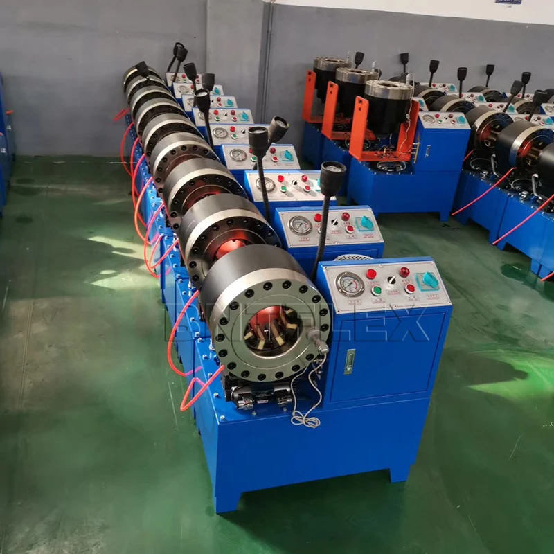 hydraulic hose crimping machine is a machine for joint withhold withhold fittings assembly equipment for loaders, excavators, truck, dump truck, hammer, ships, tubing assembly on the production and processing equipment, which will be by supporting the contractile force exerted by the metal connector crimping machine dies, will withhold solid metal joints on the supporting rubber hose. Crimping machine is suitable for all types of mechanical high and low pressure hose, pipe, pipe, cable connectors, air conditioning pipes withhold, widely used in vehicles, engineering machinery, welding equipment and other industries. Crimping machine with high precision, high efficiency, and can withhold all forms, and a variety of wire layers caliber elbow, flange, high pressure, large-diameter hose assembly.