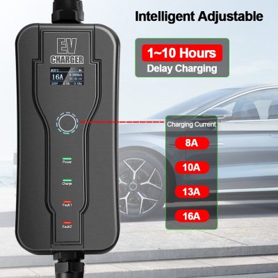 The round shape button “O” is for adjusting current. touch the button lightly to change the current. When you adjust the current, the power plug should be always connected,SAE J1772 Type 1 (IEC62196-2 Type 2) plug should be disconnected.