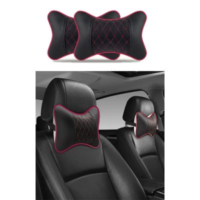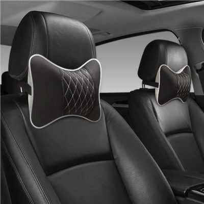 Universal Car Neck Pillows Both Side Pu Leather Pack Headrest for Head Pain Relief Filled Fiber Car Pillow Neck Pillow for Car
