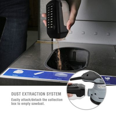 The accessories are: 10PCS sandpaper sheets (5 sheets each of 80 mesh and 120 mesh), 1PC plastic dust box, 1PC instruction manual.