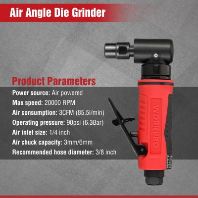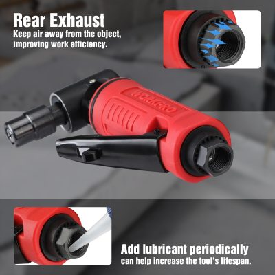 The air dies grinder measures 6-5/16 inches long and weighs 1lbs, is comfortable for maneuver and is perfect for one-handed grip.