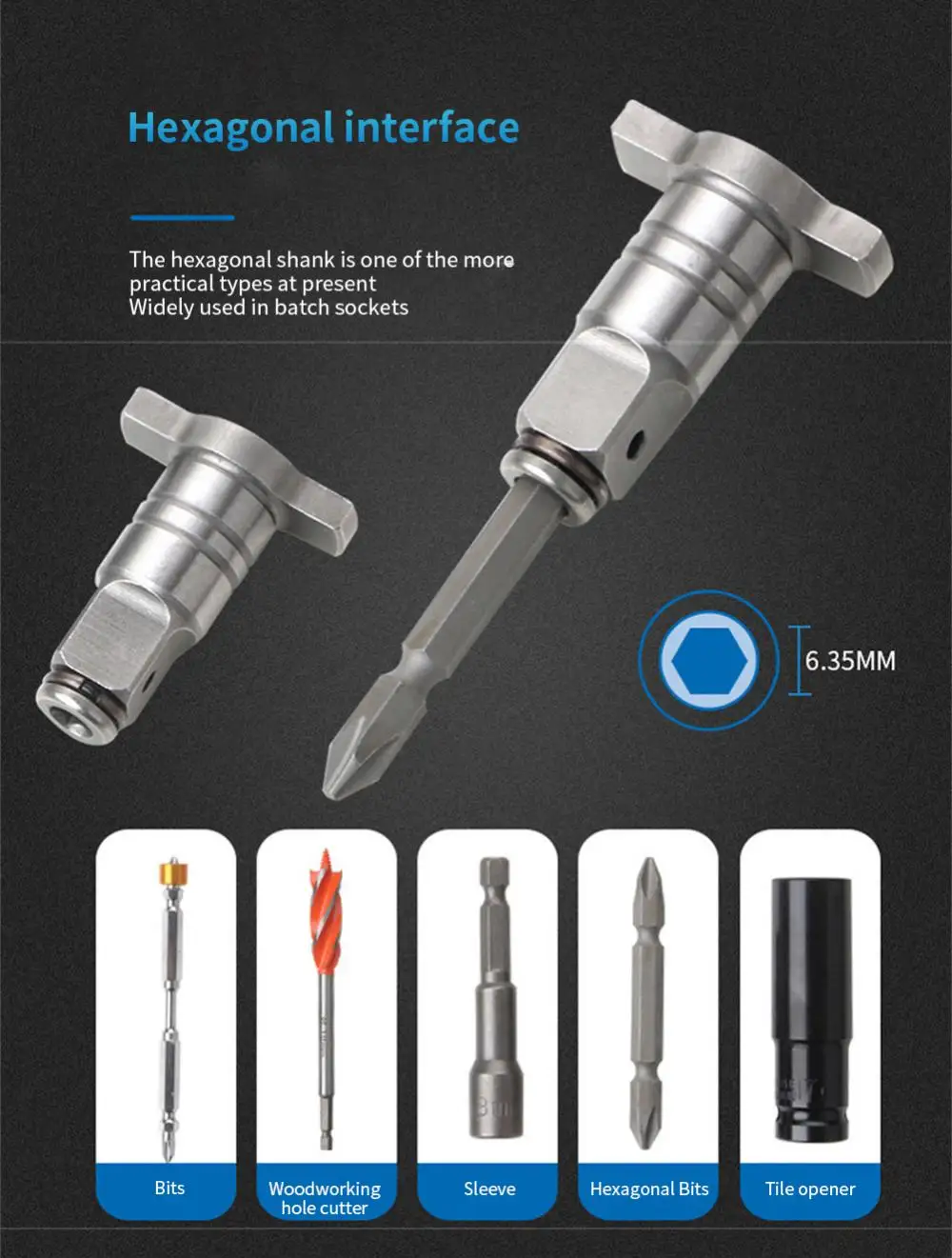 3. Various tools with hexagonal handle can be used, such as sleeve, screwdriver, drill, etc.